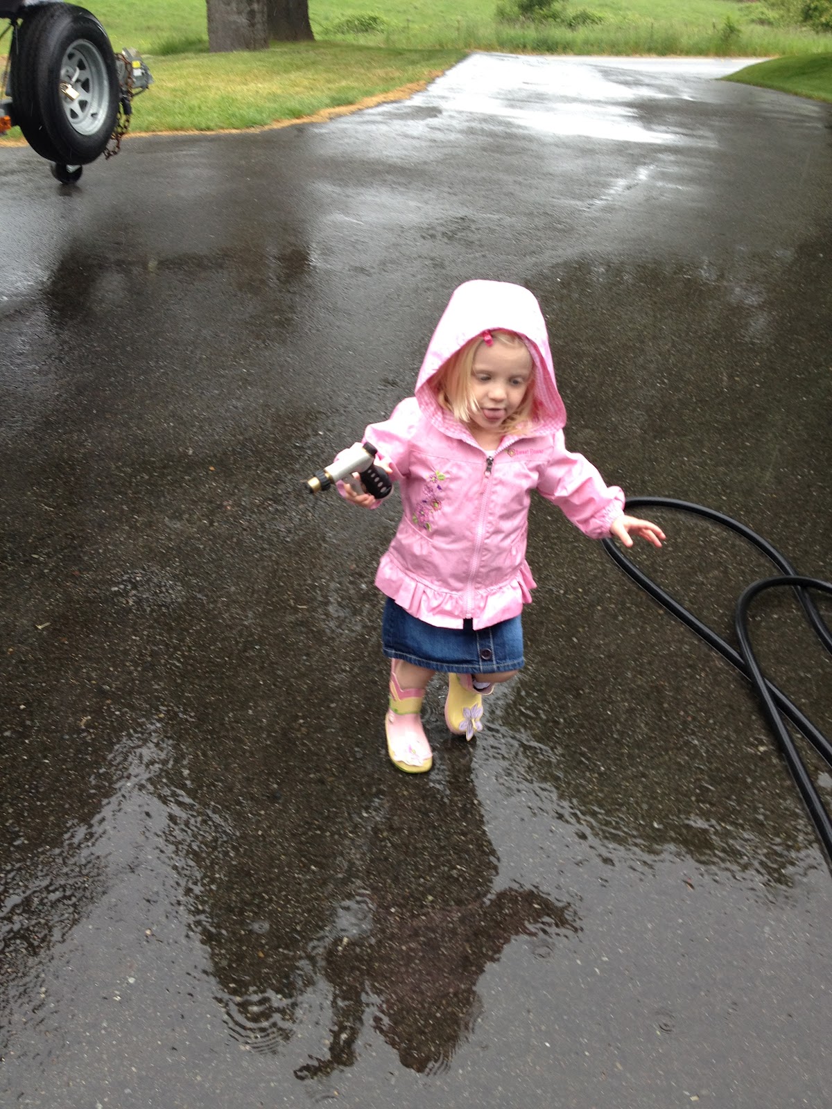 We washed Mommy's extremely dirty car at Nana & Opa's in the rain. So fun!